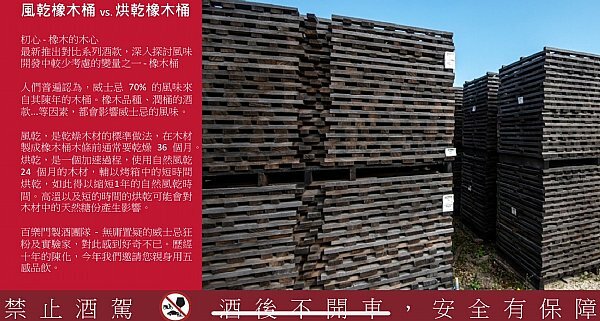 威士忌 70% 的風味來自其陳年的木桶,百樂門最新推出對比系列酒款「風乾橡木桶Air Dry」及「烘乾橡木桶Kiln Dry」,深入探討風味開發中較少人探討的橡木的乾燥方式,高溫以及短的時間的烘乾會對木材中的天然糖份產生影響,進而讓威士忌獲得不同的風味。