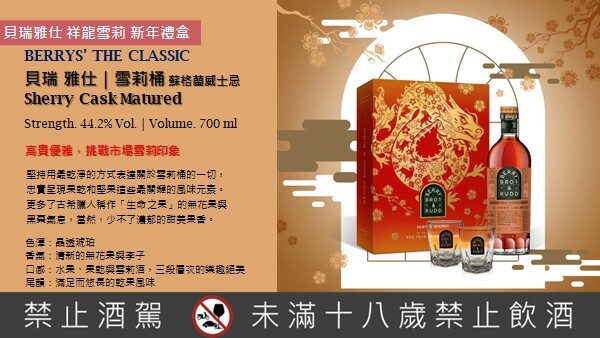 貝瑞雅仕雪莉蘇格蘭威士忌優雅優雅,挑戰市場雪莉印象。雪莉橡木桶在威士忌世界中擁有奢華的標誌,價格不斐的雪莉桶也確實為威士忌帶來了必然的影響,使酒體帶有成熟的水果乾、柑橘與堅果香氣,此酒款熟成於精美的雪莉桶後經過完美的手法揉合,創造出深度平衡的獨特風格。