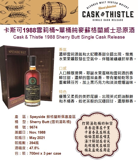 🌟尾韻 : 優雅又柔長的美妙尾韻,出現英式奶油酥餅和木桶香,如老茶般的沉穩回甘,濃厚醇香
