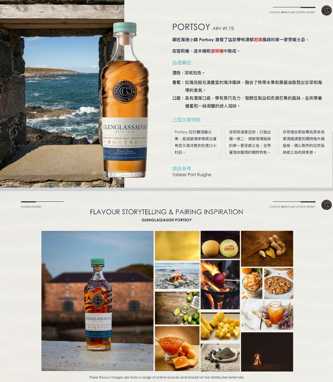 這款重度泥炭海洋風味酒以格倫格拉索附近的港口村莊波索伊 (Portsoy) 命名,在雪利酒、波本威士忌和波特酒桶中熟成。裝瓶酒精度為 49.1%