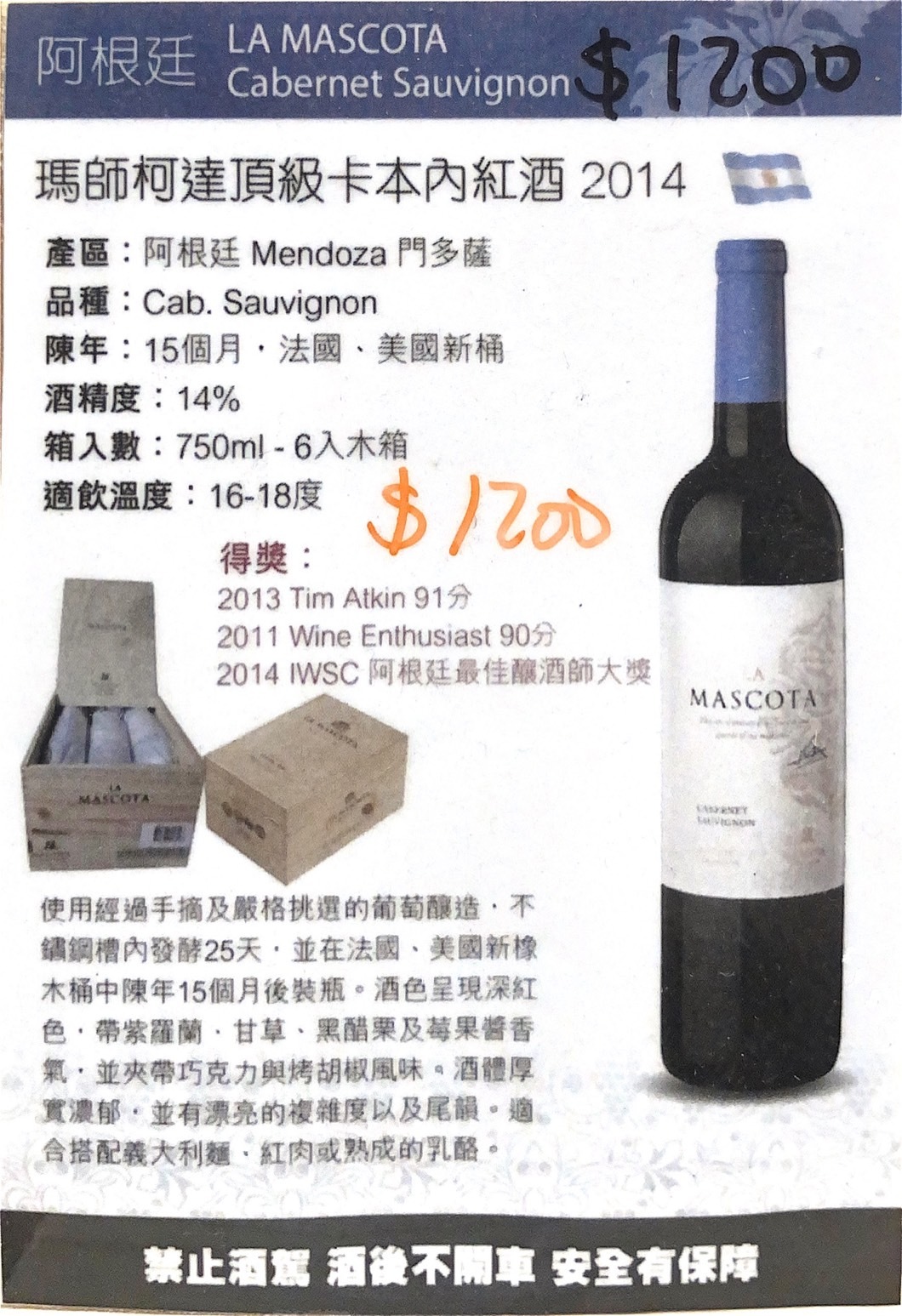 🏅榮獲2014 IWSC 阿根廷最佳釀酒大獎